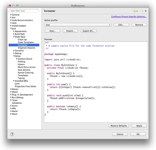 Eclipseのformatterの設定は、Java > Code Style > Formatterから。