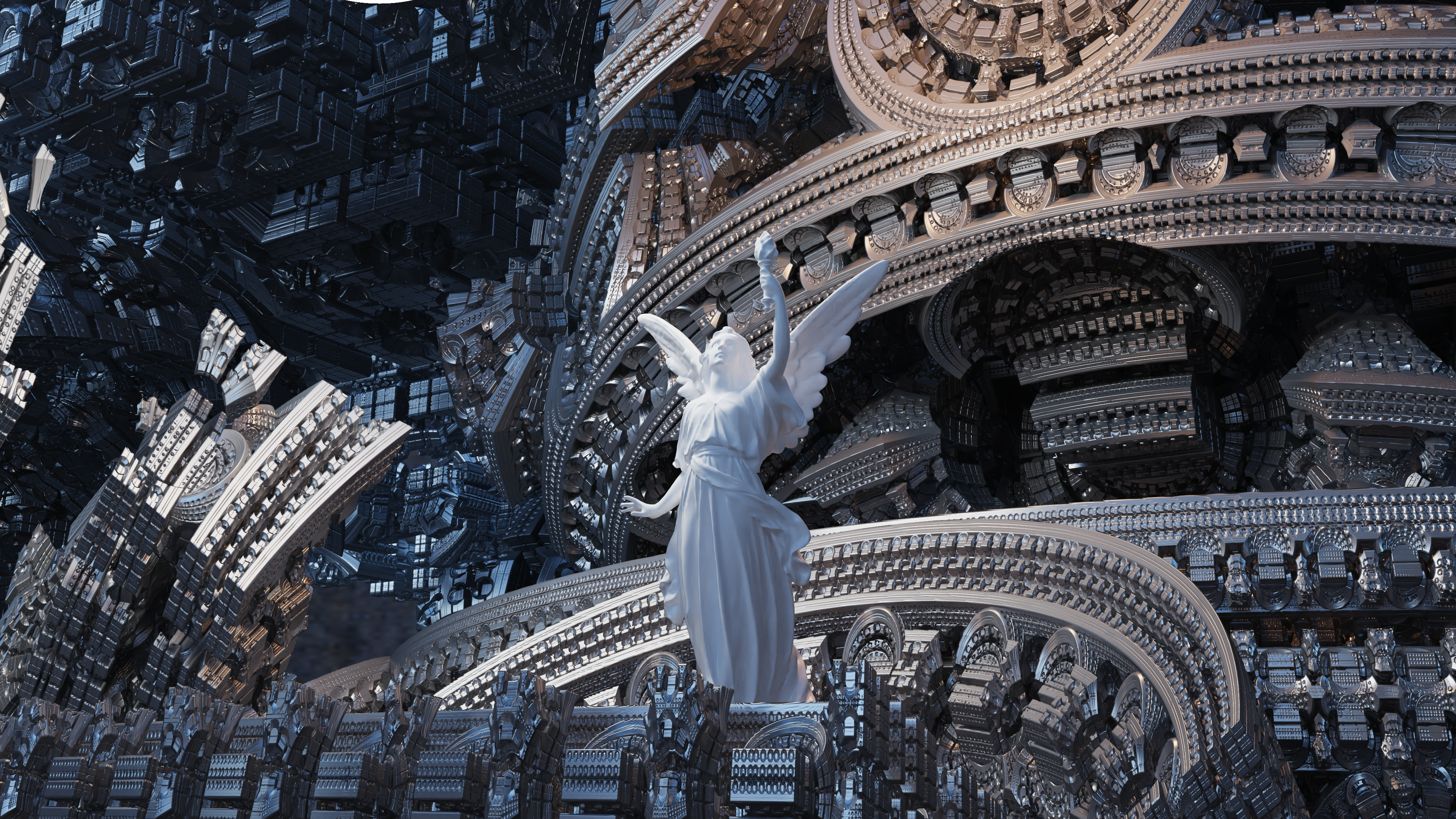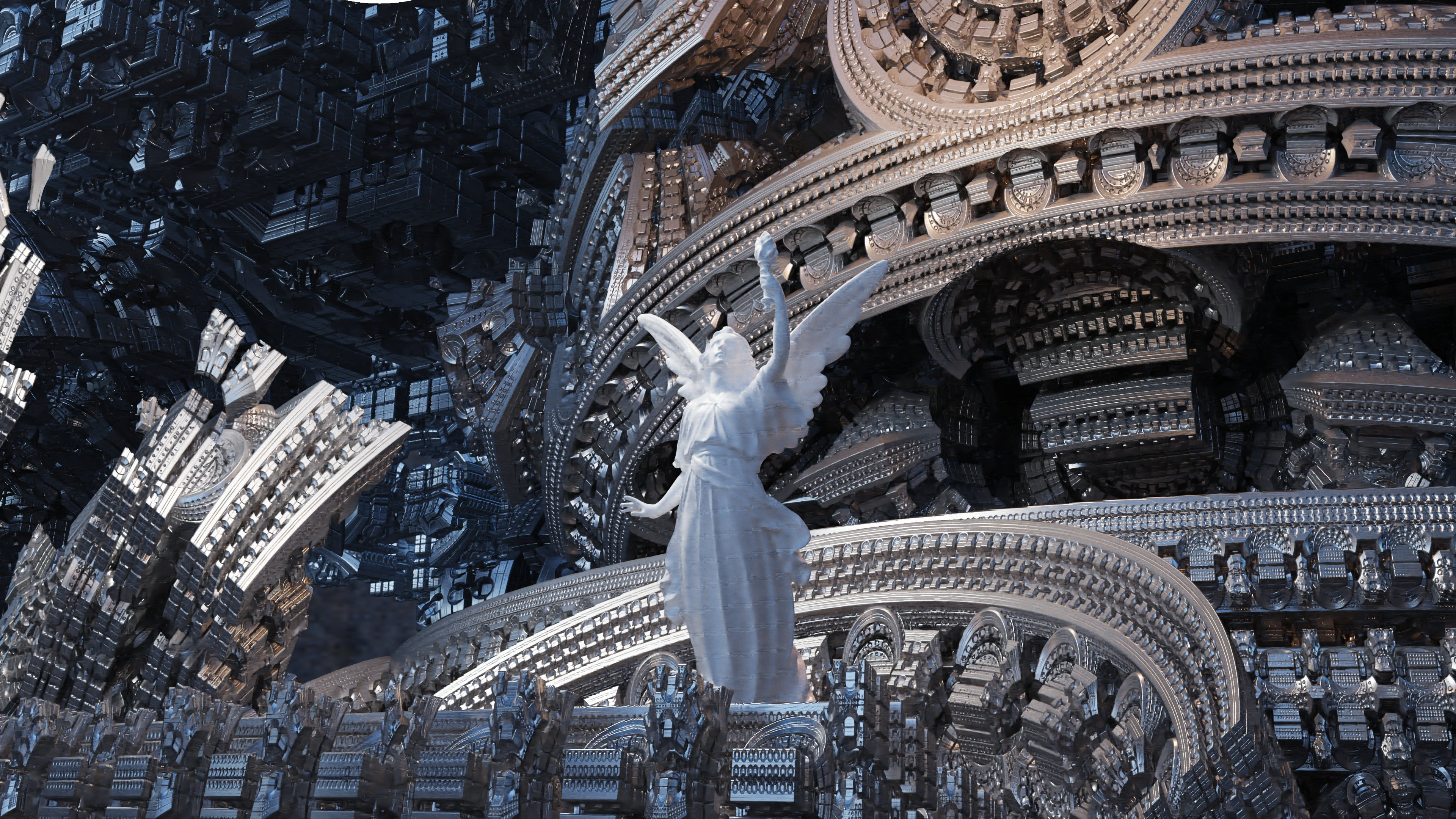 今回はMandelboxという伝統的なフラクタル図形を距離関数として用いたのですが、
