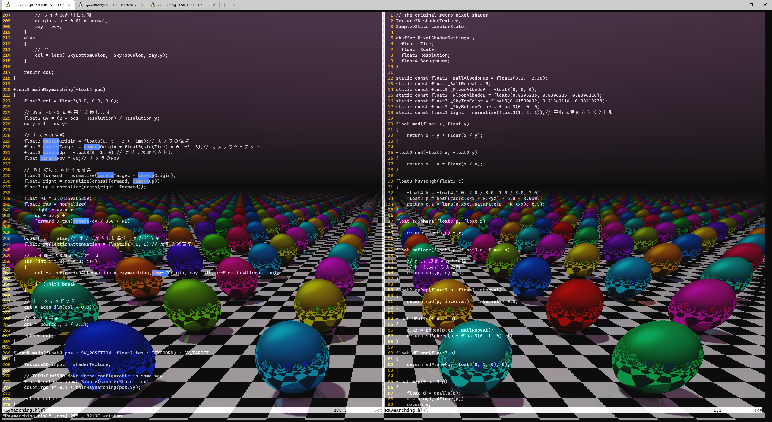 - Vimの左側ペイン: HLSLのシェーダー