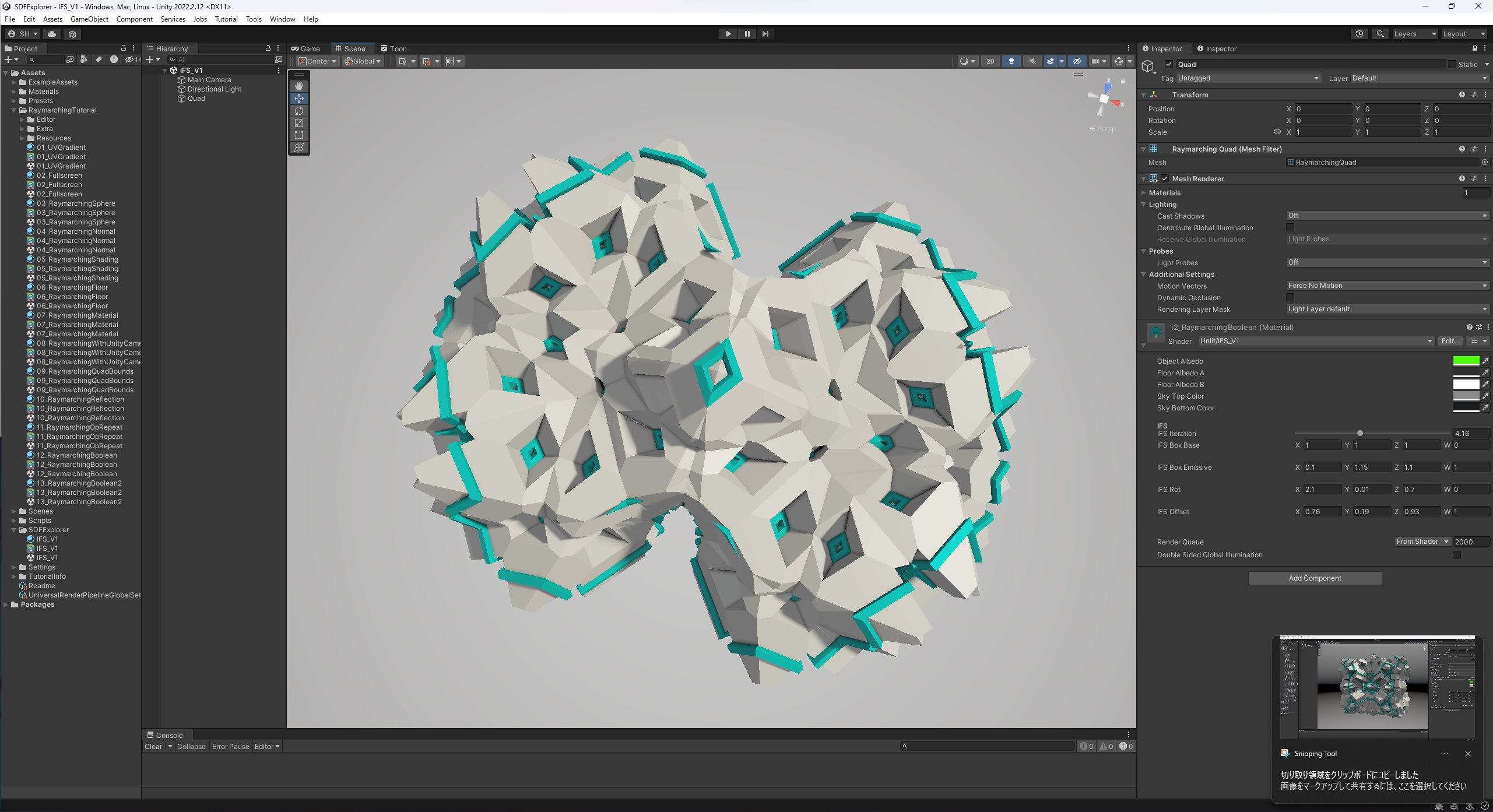 モデリングに関しては、シンプルなCubeをIFS(Iterated Function System)を使用して複雑にしました。