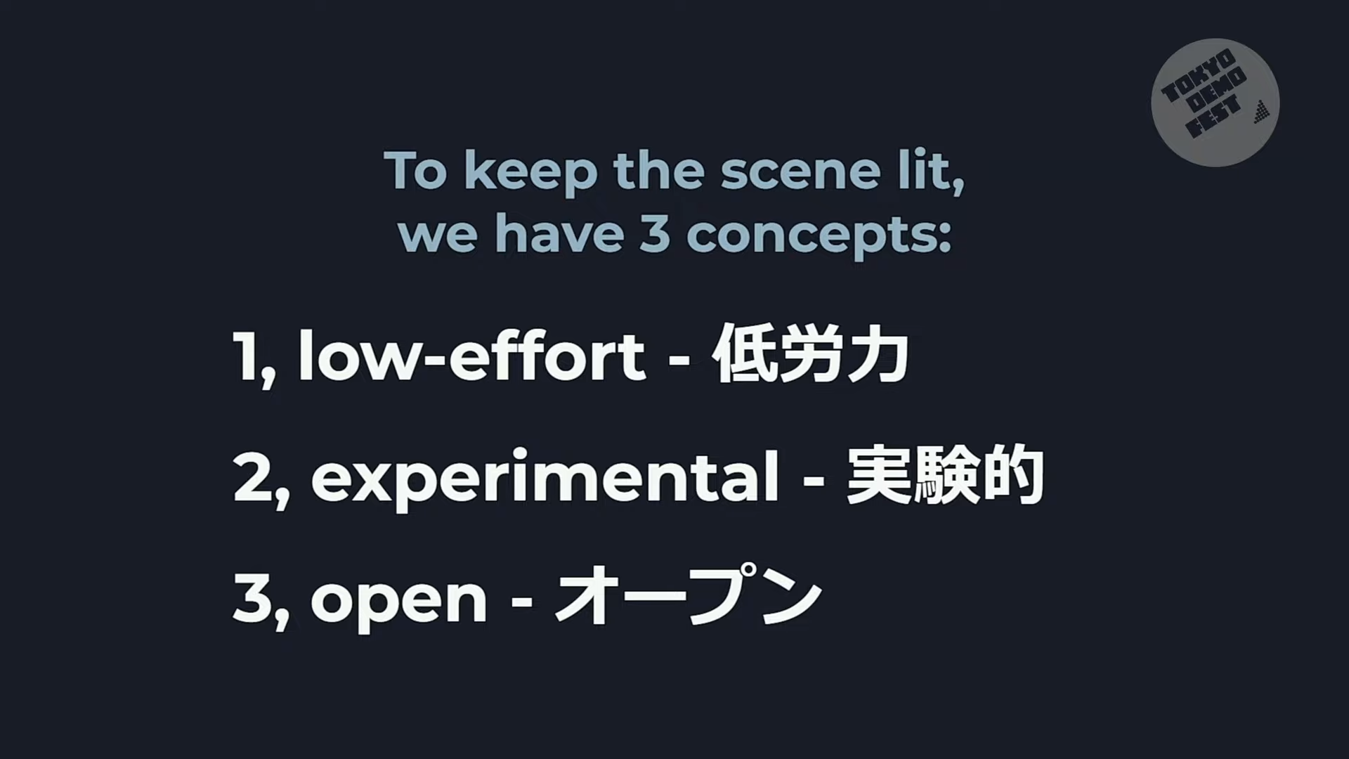 閉会式ではTDF 16msのコンセプトについての説明がありました。「シーンの炎を絶やさない🔥」「持続可能なデモパーティ」の話が興味深かったです。