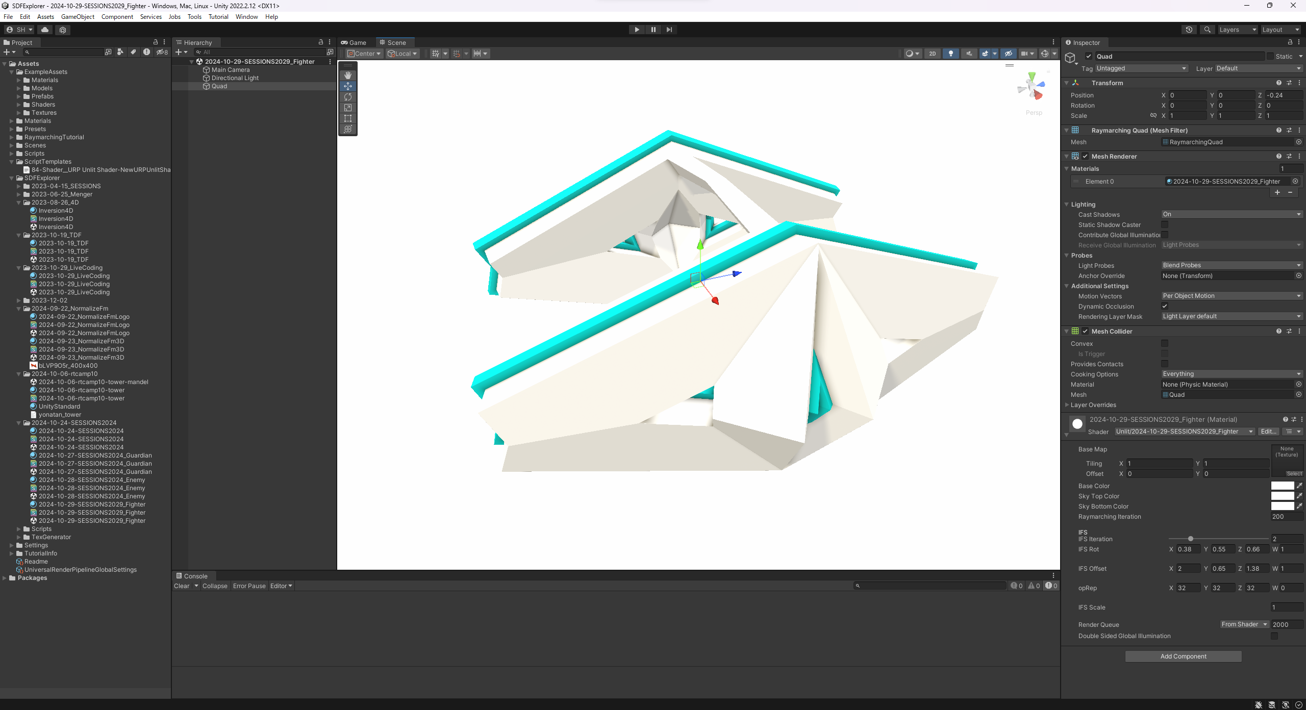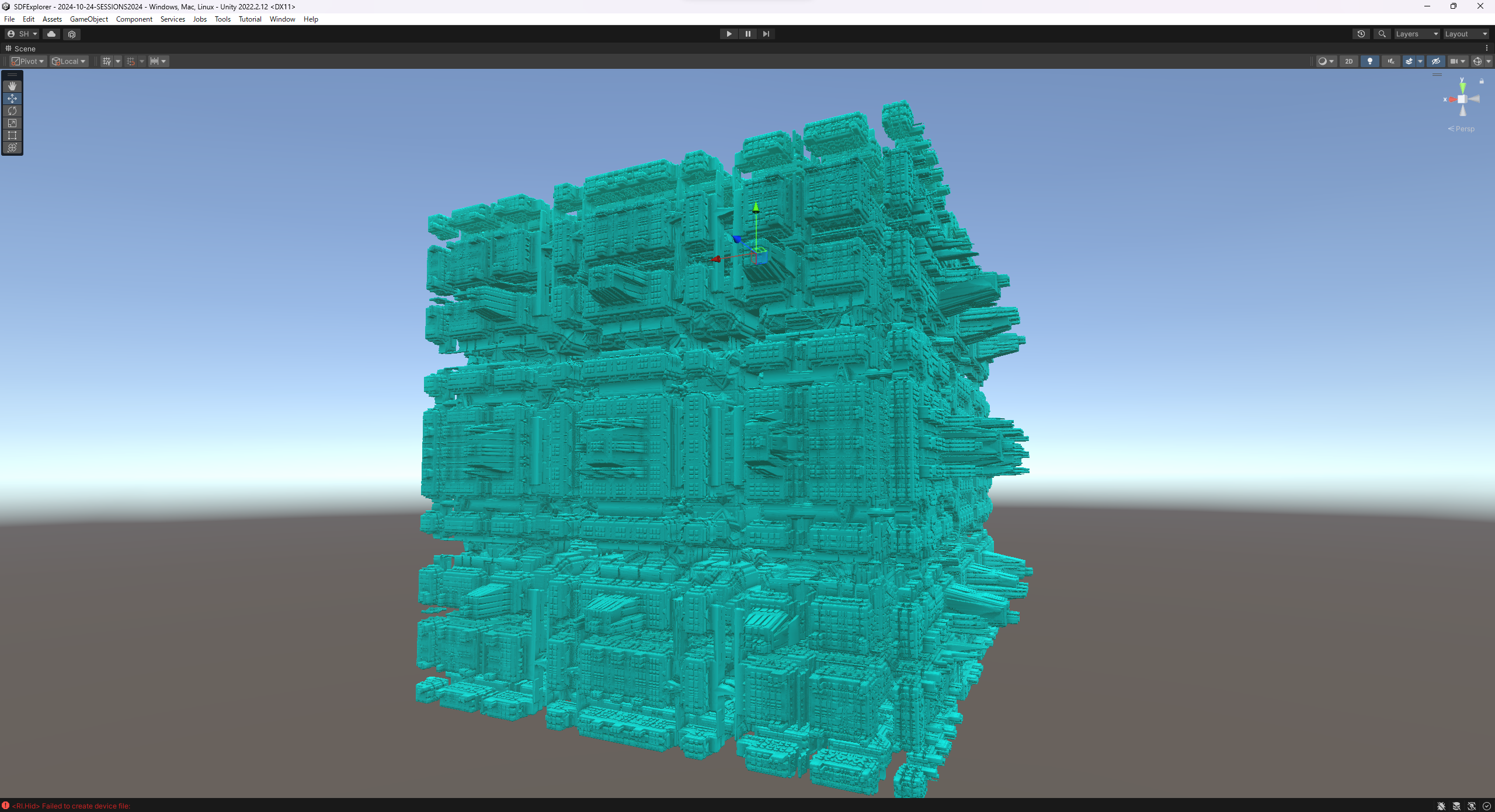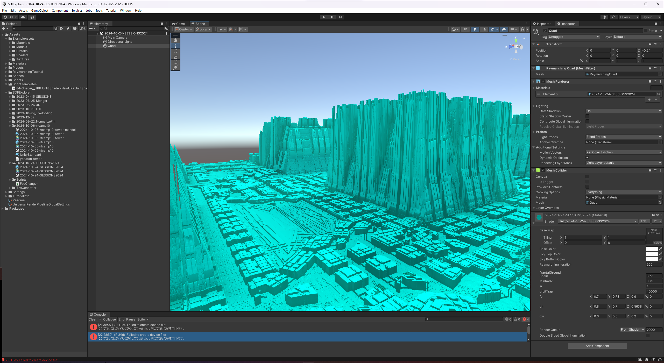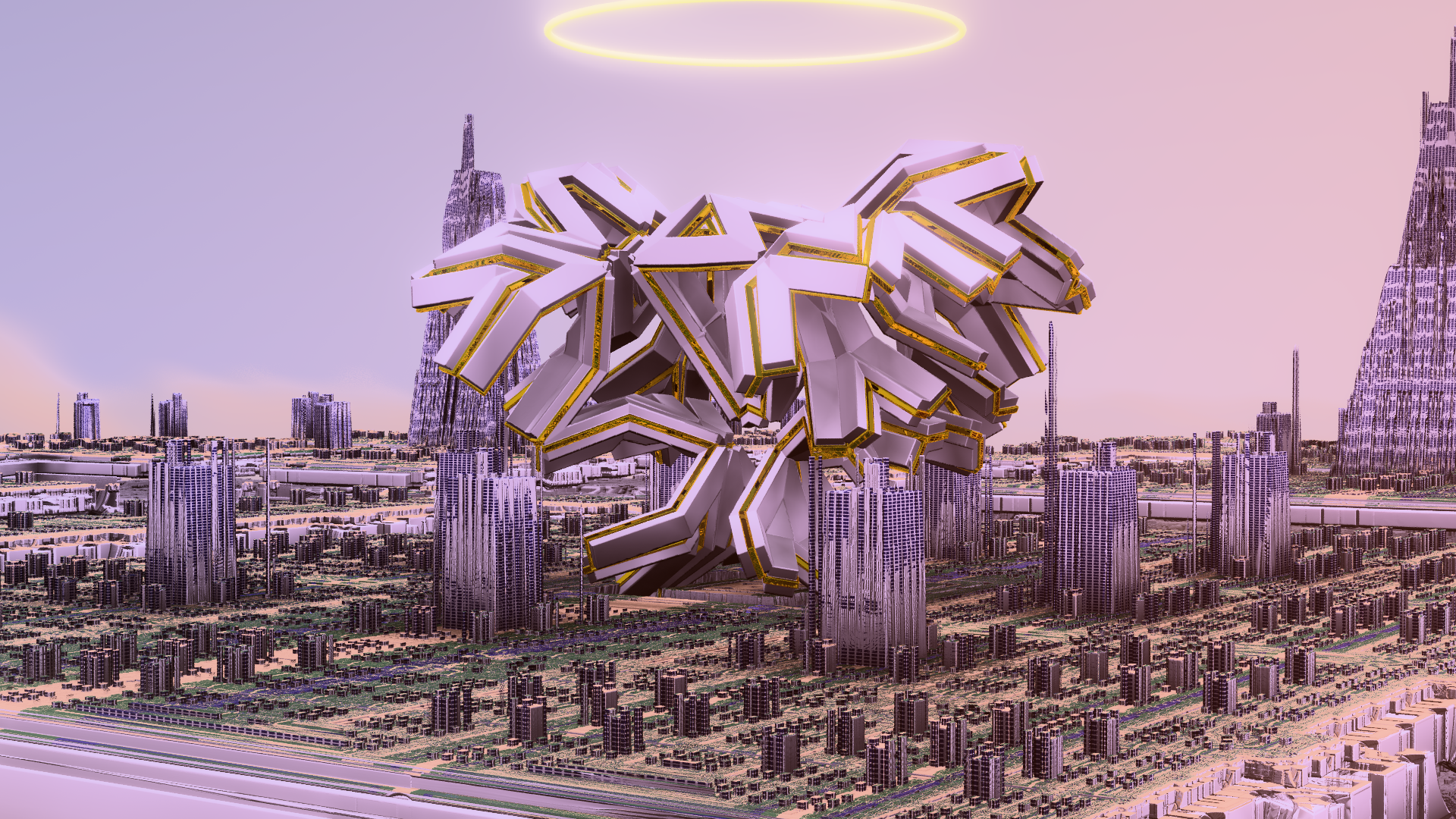 ビルのような突起のついたMandelboxをベースに、Unityを使ってパラメーターを調整しながら街の形状に仕上げました。