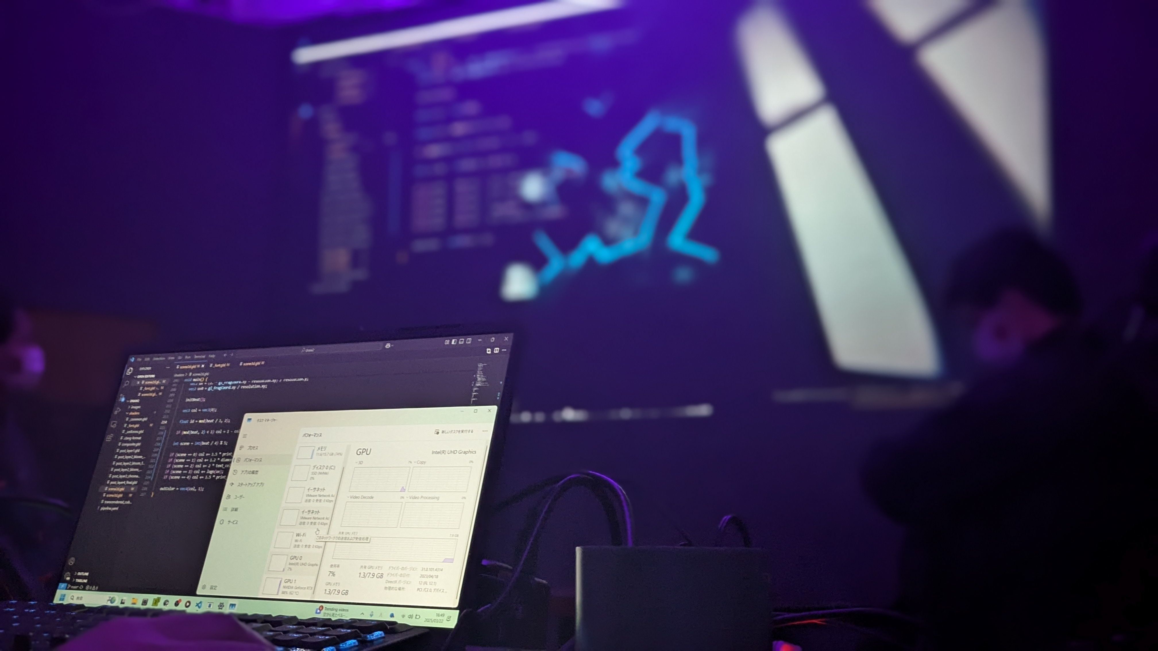 原因は、同一PC内で異なるWindowsアカウントを使ってそれぞれVJソフトを起動していたため、バックグラウンドでGPUリソースが競合してしまったことです。あまり詳しくないのですが、Windowsではアカウントにログインしていない状態でもバックグラウンドでGPUを使用する仕様のようでした。