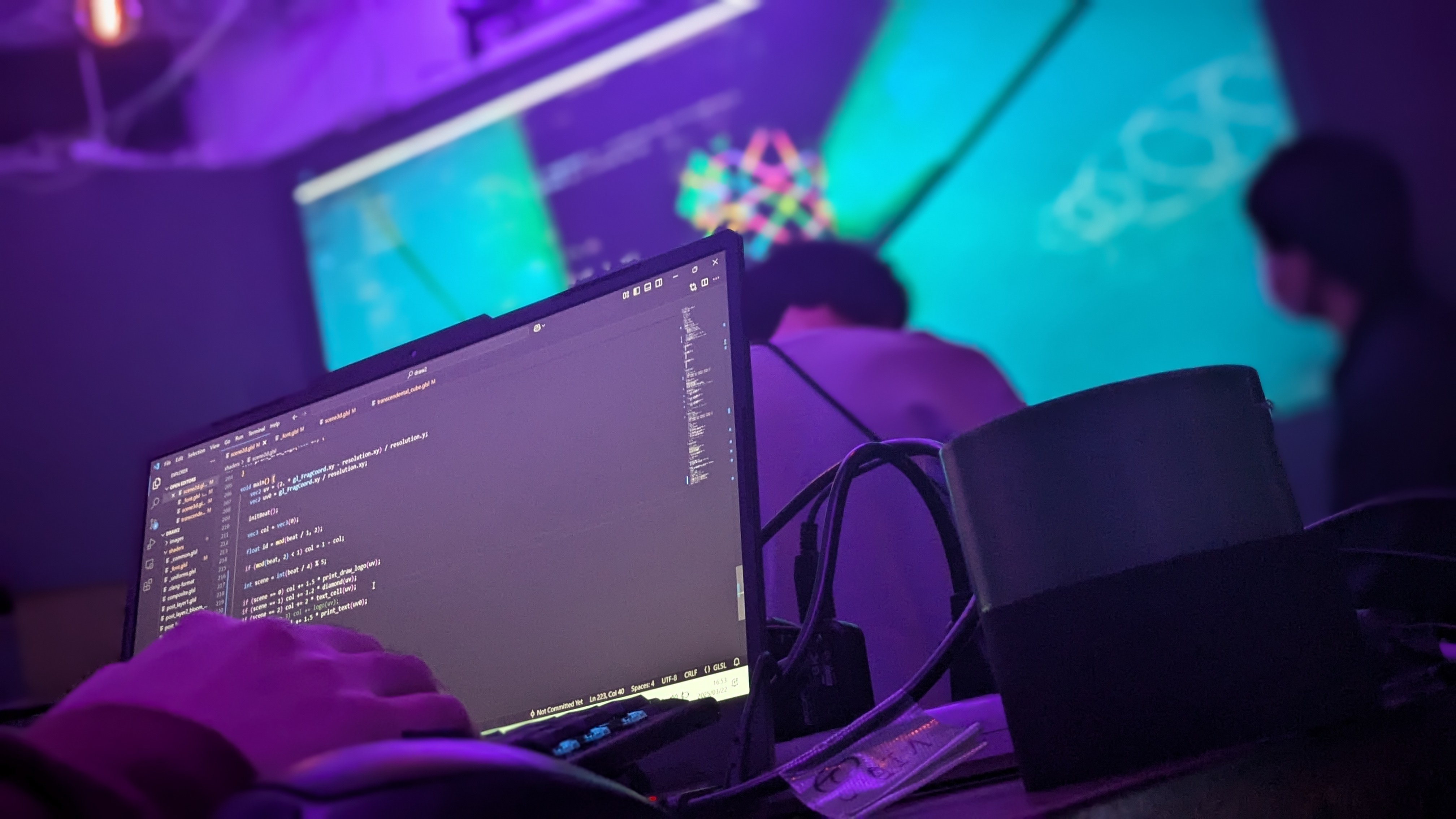 私はとうふおさおいさんのVJとして出演し、Sh4derJockeyを使ったGLSLライブコーディングによるVJを行いました。