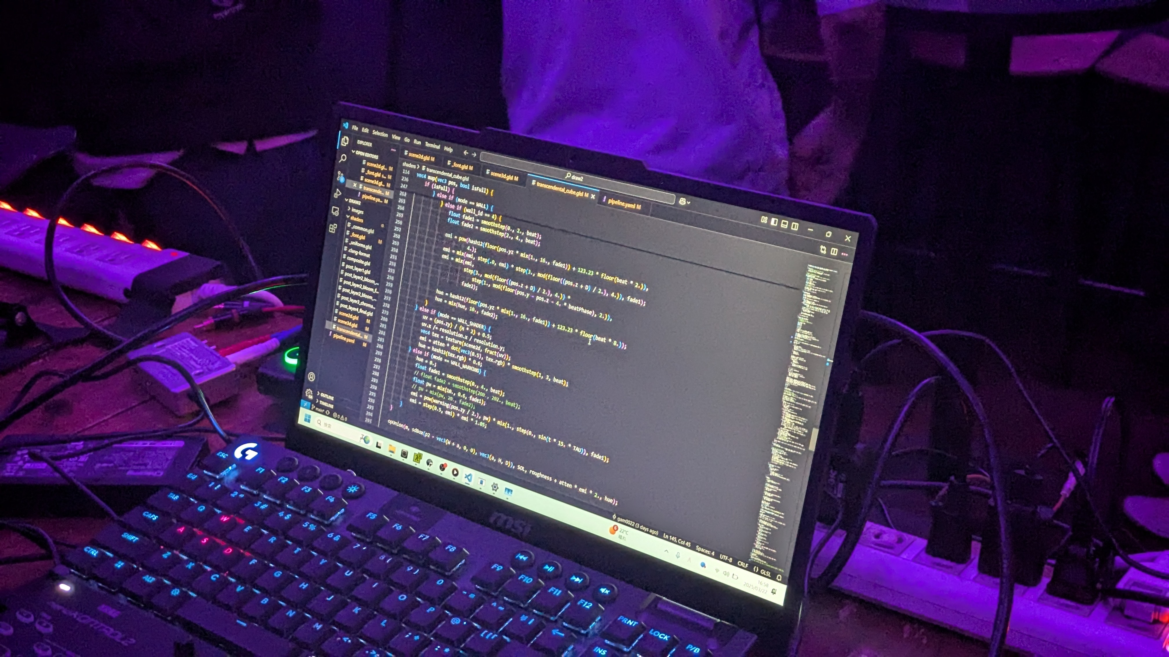 何も無い状態から0からライブコーディングするわけではなく、シェーダーのベース部分を事前に作り込んでおいて、パラメーターやコンポジット処理をリアルタムに編集するような形式にしました。